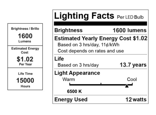 - AC Mode Lumens: 1600 lm (100W Equivalent)
